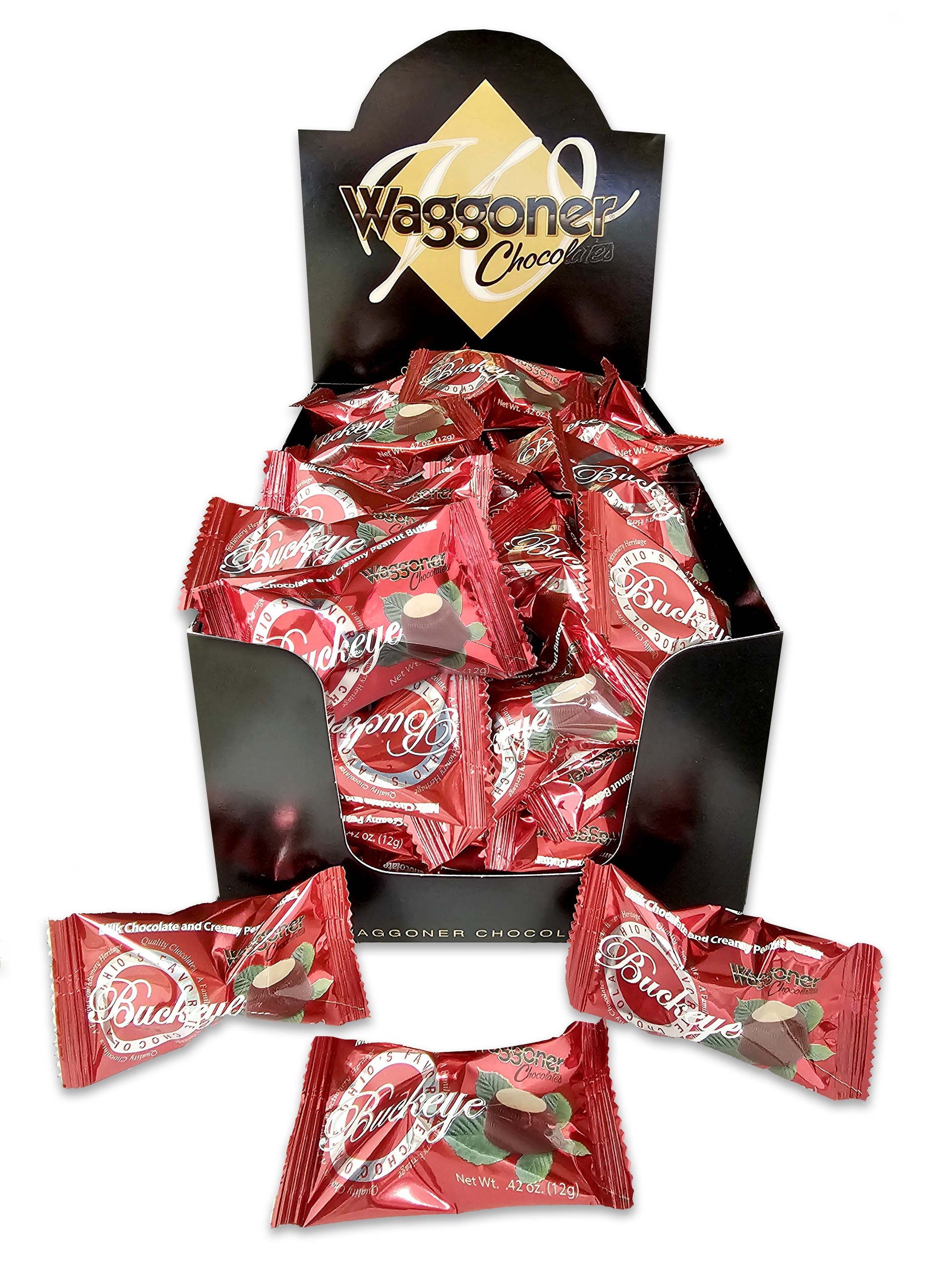 Enjoy approximately 166 individually wrapped buckeyes, each encased in red foil featuring an authentic buckeye image and Waggoner's signature stamp. Perfect for sharing or gifting, these treats combine traditional flavor with distinctive packaging that ensures freshness and a touch of elegance. Ideal for bulk needs, they offer convenience without compromising quality.